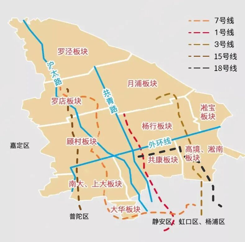 相比于外环外的嘉定(11号线),徐泾(2/17号线),宝山已经坐拥5轨,地铁1/3/7/15/18号线,均可直达市区,是当之无愧的”轨交之王“。并且在2025年前,宝山将再新建4条全新轨交:19/21/22/24号线。这四条线路将分别在宝山吴淞,淞南,江杨南路,杨行,大场等板块设有站点。对于300-500w预算的刚需购房者来说,是个比较不错的选择。接下来我们就简单分析一下宝山的各个板块以及明年将入市的新盘。据我们团队统计,明年宝山全区将至少有12个新盘入市,![]()