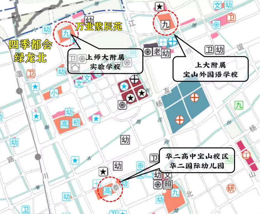 附近教育资源有上海大学附属宝山外国语学校,以及规划的上师大附属宝山实验学校,未来优秀的教育资源还是非常完善的。
