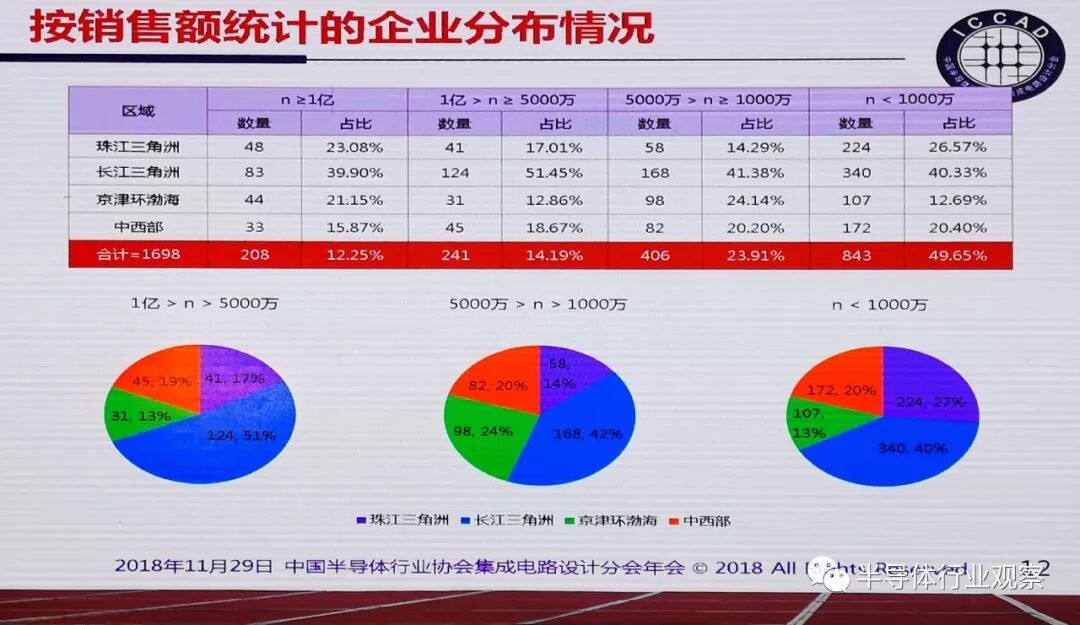 从事多媒体的企业从去年的72家略有提升至75家,销售总和提升了7.59个百分点,为188.90亿元;从事导航芯片研发的企业数量从23家增加到28家,销售总和反而下降了7.56%,为5.71亿元;模拟电路的企业数量从180家增加到210家,销售答复提升了108.04%,达到141.61亿元;从事功率器件业务的企业从82家增加到115家,销售总和提升了3.3%,为79.2亿元;消费类电子的企业数量从去年的610家增加到783家,销售增长36.46%,达617.24亿元,继续保持了2017年的快速增长势头。