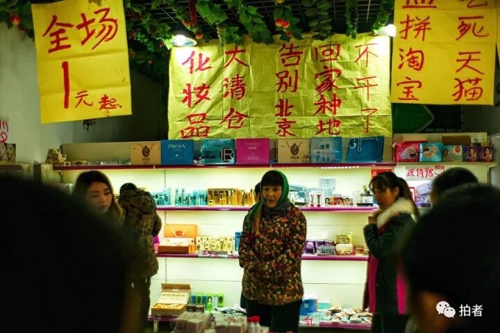 一些商铺在疯狂甩卖货品。“10元一双”的白纸片贴在各个鞋店玻璃门上,特价处理的鞋子随意铺满店内。美妆店里挤满了手提购物篮的女性,“三折”、“清仓甩卖”的字样贴满小店的角落。凡是做生意的商铺,总能看见一两位店员站在柜台前,扯着嗓子吆喝,“给个价也卖,赶紧的嘞”,声音沙哑。