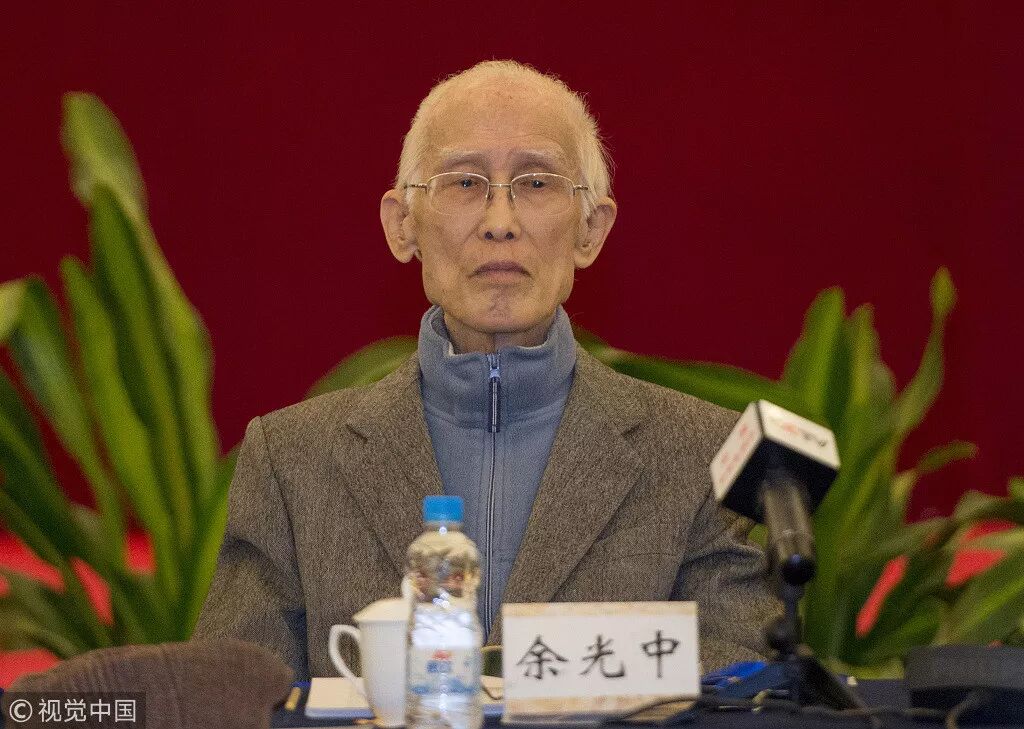 满头白发,穿一身白条纹衬衣、戴金丝框眼镜,余光中出现在舞台上。他看起来清瘦,却精神矍铄。