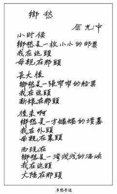 余光中《乡愁》手迹。图片来自网络