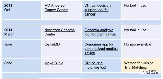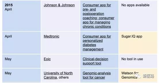 下表为IBM 在医疗方向专案与目前的进展: