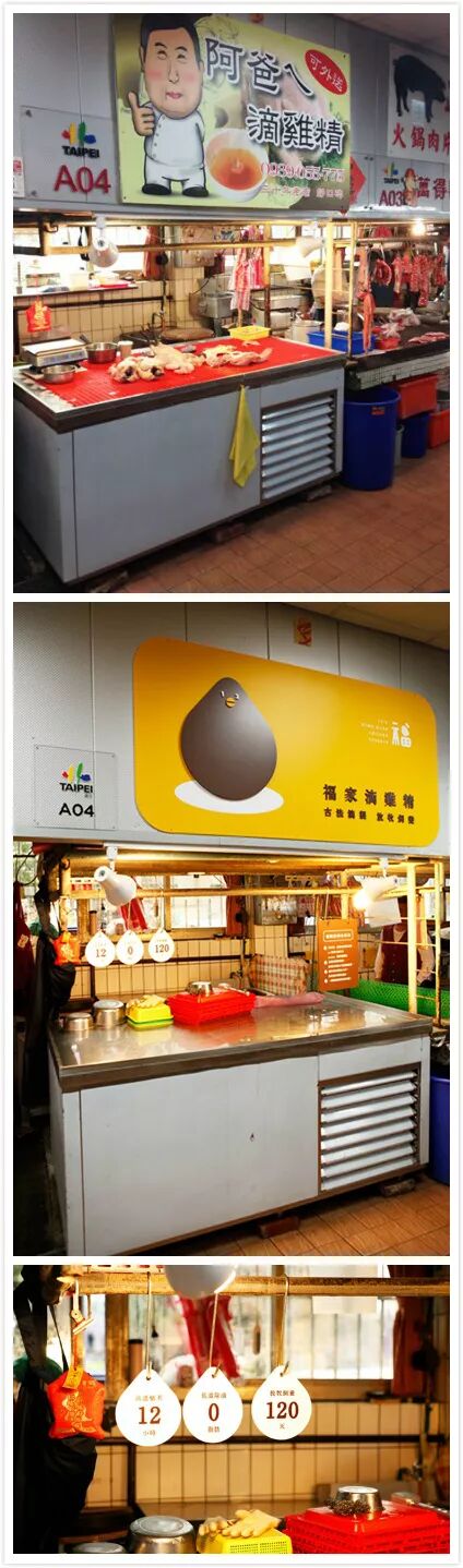 海峡的对岸,在我们的台湾省,也对改造店招做出过尝试,但完全是不同的方向。台北市文化局组织了一个活动由一群设计师和艺术家组成的团队对台北传统的菜市场进行“再设计”,改变人们对于菜市场“嘈杂、混乱”的印象。