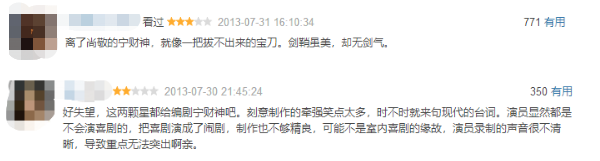 虽然制作和演员阵容上都更强大,但少了尚敬对分寸的拿捏,喜剧变闹剧,且说教意味太重。