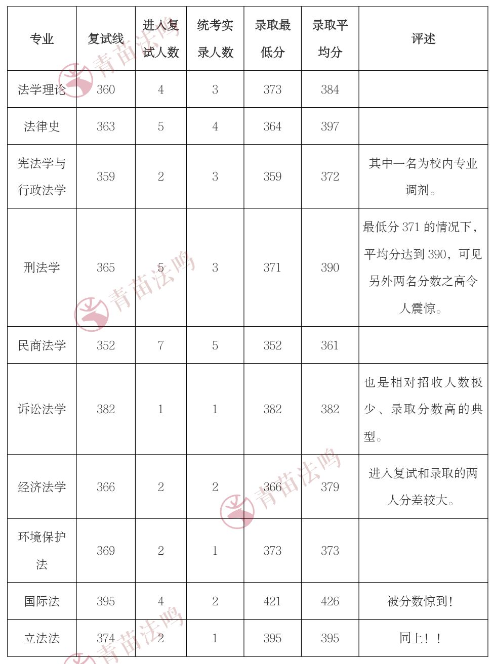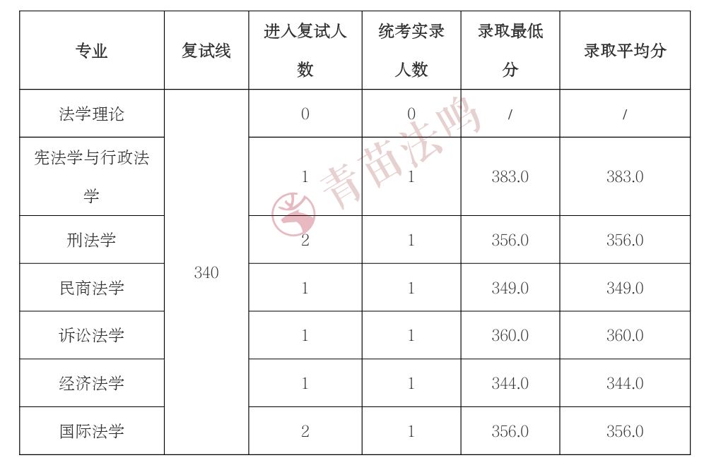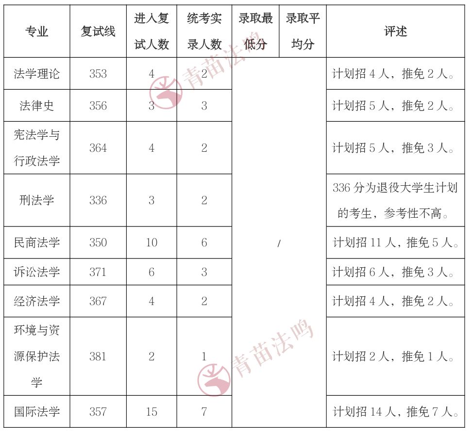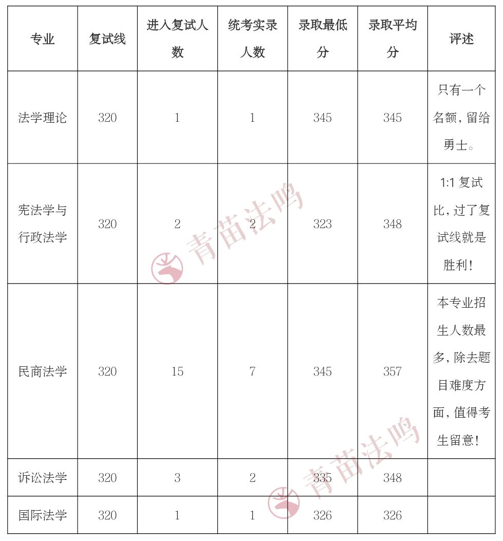 2.法学(商法)专业共有6人进入复试,其中1位为退役大学生计划(最终均被拟录取),表格中的数据已剔除。