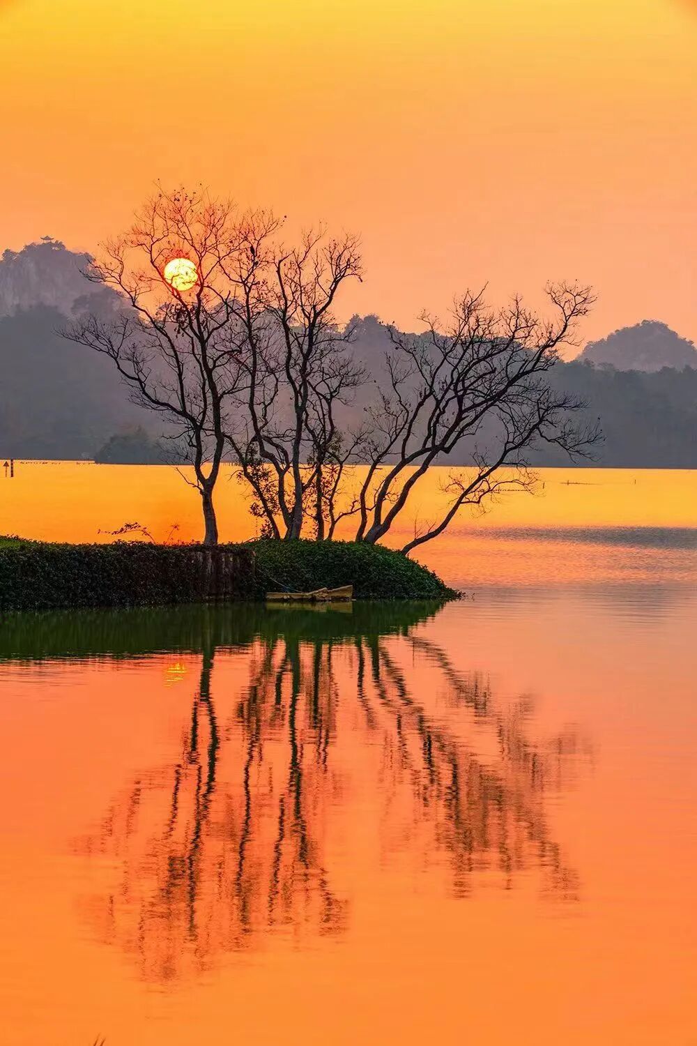 谁家颜料乱飞扬,散入双湖色彩狂。