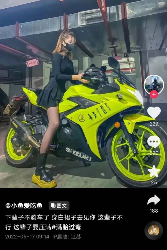 很快有人认出,她竟是玩机车的网红@小鱼爱吃鱼,今年才23岁。