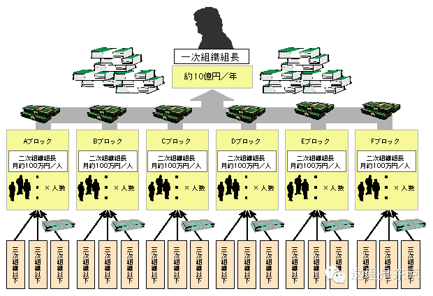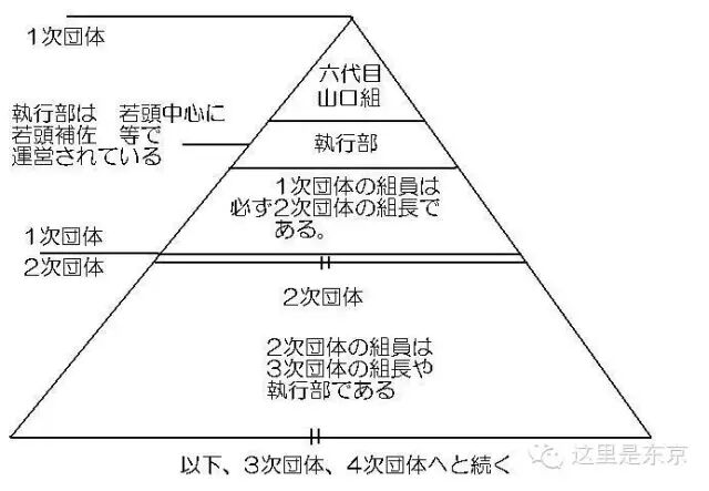 日本的黑社会组织形式通常是一个大帮派下面有一群小帮派。双方的关系类似于母公司与子公司这种商业模式,也很像笑傲江湖中五岳剑派的那种形式。