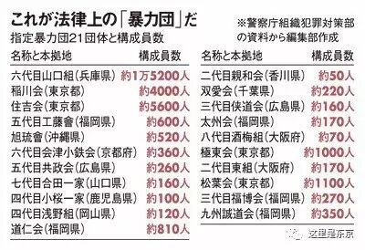 看到这个问题下面大部分的回答,主要都是讲山口组了,好像日本的黑社会就叫山口组一样。其实除了山口组,日本还有20多家经过日本警视厅认证的黑帮组织。