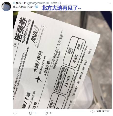 一名日本推友暑期去北海道旅行。8月20日这天计划乘坐全日空的航班返回大阪。