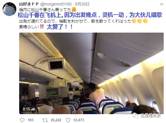 从千岁出发前往伊丹的诸位,我是松山千春。扣好安全带一个小时以上。烦躁了吧,恼火了吧。但是,相信会给大家带来安全飞行。都很辛苦,再等一等吧。旅行就是带上谁同行,让我们一起完成这趟旅行吧。