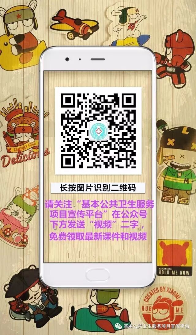 关注“基本公共卫生服务项目宣传平台”微信公众号,在公众号下方回复“视频”二字即可免费领取课件和视频。