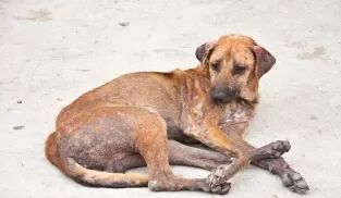 ● 病狗的典型外观症状:消瘦、脱毛、耳边和眼圈起麸皮样鳞屑并结有血痂、爪甲畸长等症状,依此可辩认。