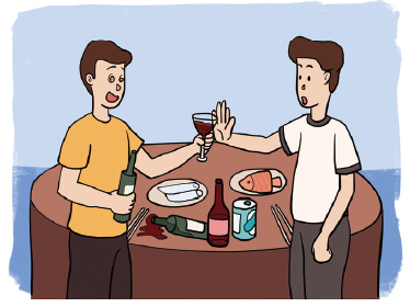⑵ 成年男性一天饮用酒的酒精量不超过25 克,成年女性不超过15 克。