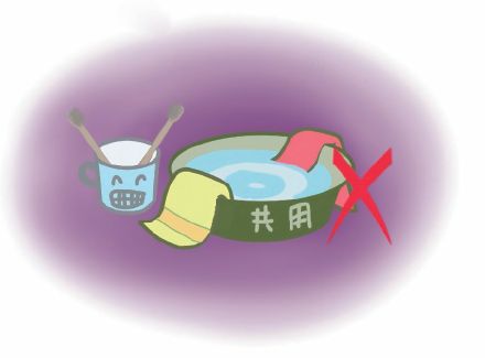 ⑶ 共用毛巾和洗漱用具,容易感染沙眼、红眼病、皮肤病和性传播疾病等。