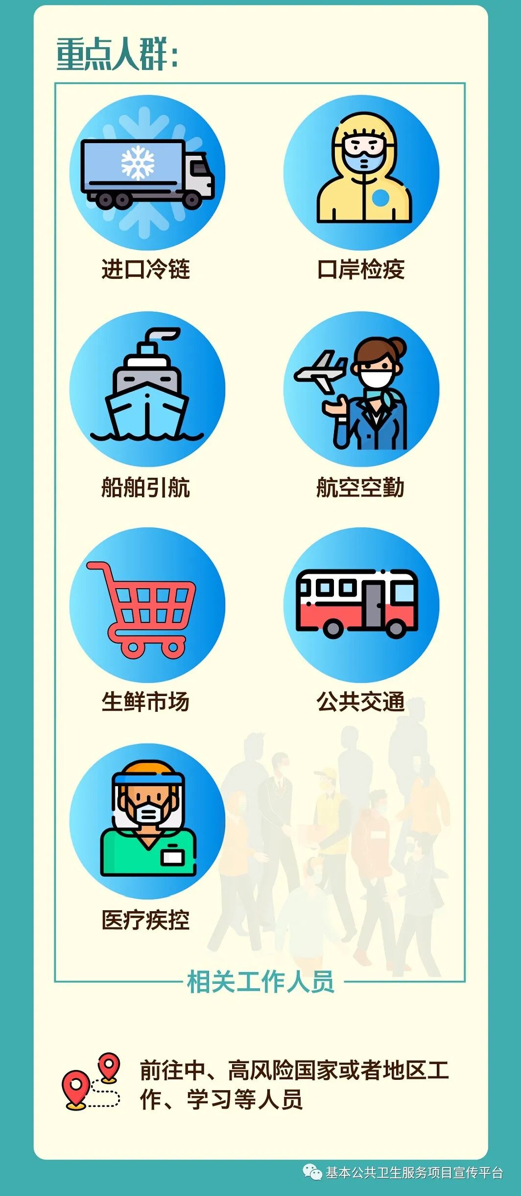 现阶段,新冠病毒疫苗接种的重点人群主要包括从事进口冷链、口岸检疫、船舶引航、航空空勤、生鲜市场、公共交通、医疗疾控等感染风险比较高的行业人员;前往中高风险国家或者地区工作、学习等人员。