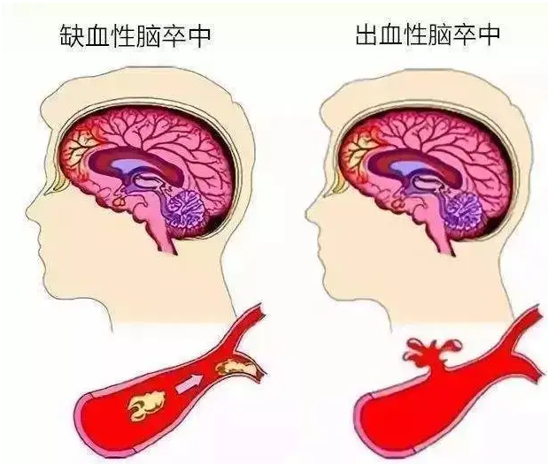 缺血性卒中:因脑血管硬化导致血管狭窄及闭塞,或因血凝块流到脑血管造成血栓掉落闭塞脑血管占70%。