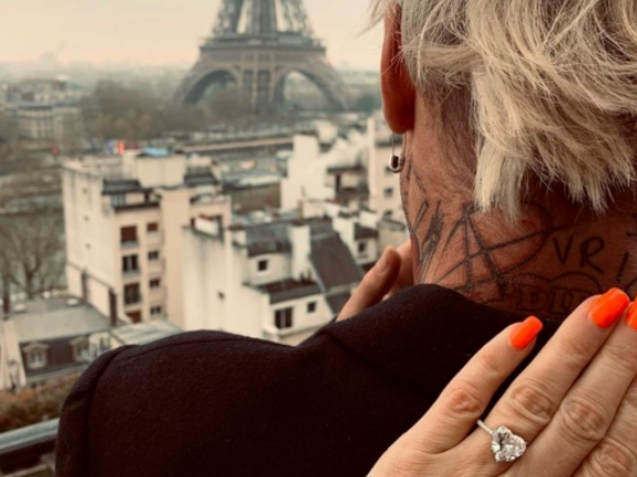 除了全球巡演,艾薇儿还有重磅消息宣布——今年4月8日,艾薇儿官宣订婚了!