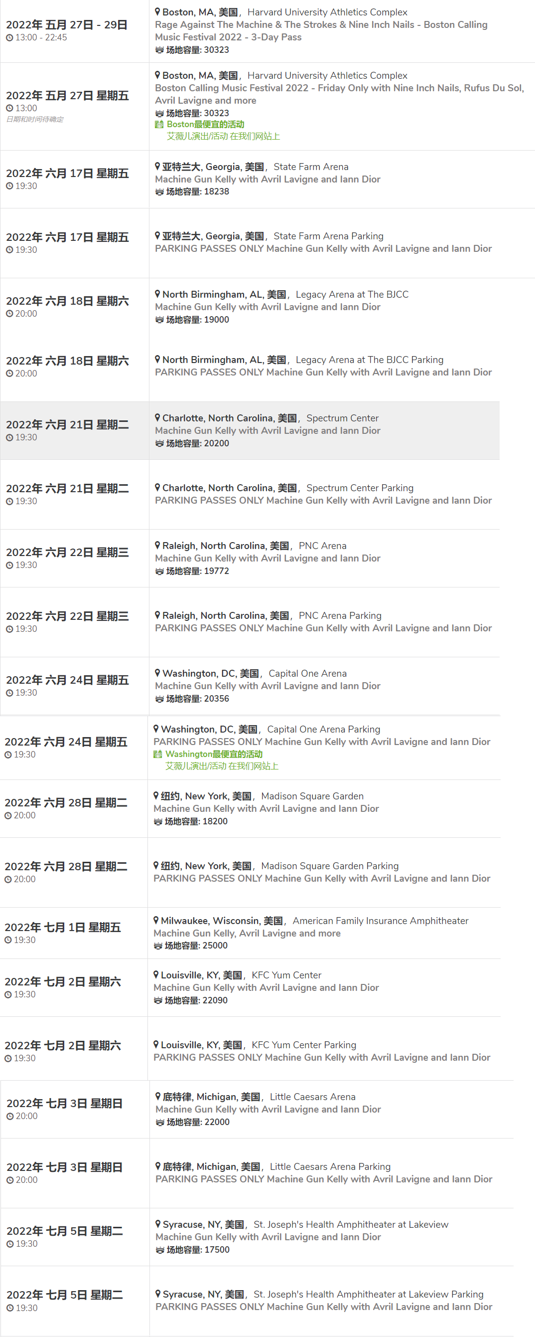 下滑查看2022艾薇儿Bite Me演唱会北美站时间表