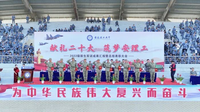 2022级学生军训汇报表演暨总结表彰大会在嘹亮激昂的《中国人民解放军军歌》声中圆满结束。