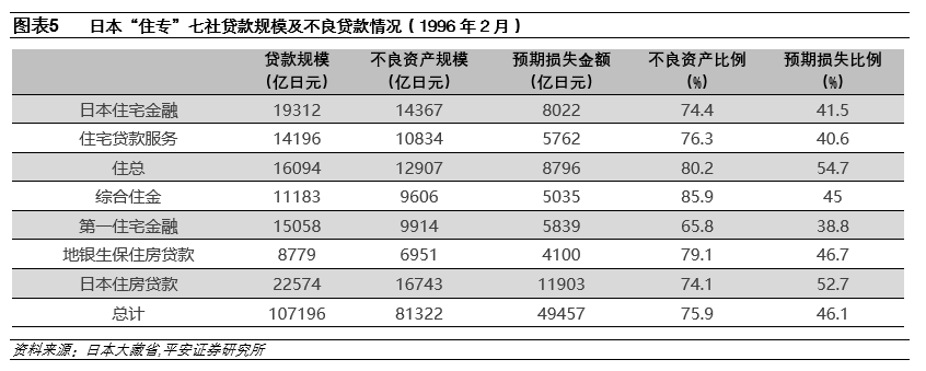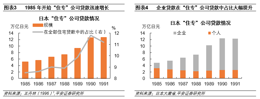 1)日本金融系统的隐含风险更高,为房地产泡沫的膨胀与破裂提供了基础。一方面,在房地产市场扮演重要角色的“住专”公司资产质量低下,抵御风险能力极低,最后只能以破产收场。另一方面,日本金融自由化改革加速推进,但其“护送船队”式的金融监管体系却未与时俱进地改革,部分银行等金融机构采取了较为激进的扩张策略,资产质量不断降低,经营风险持续增加。