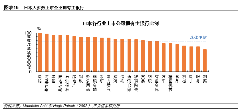 二是,“主银行”制度下金融机构与实体企业的联系更加盘根错节。二战过后,在清理企业不良债权的过程中,日本逐渐形成了主银行制度。尽管日本法律没有明文规定主银行制度,但二战后主银行制度已经成为日本金融界和企业界的一个惯例。根据于潇(2003)的研究,一般认为日本主银行制有以下特征:(1)主银行是客户企业的大股东,主银行一般不持有与自己没有业务或交易关系的企业的股份;(2)向客户企业提供系列贷款。主银行既向企业提供短期贷款,也提供长期贷款。虽然企业所需贷款并不一定全部都由主银行单独提供,但企业大额贷款是由主银行与其他金融机构组成的银团提供的,其中主银行的贷款份额最大,承担的贷款损失责任也更多。当企业不能如期归还贷款或者出现坏帐时,主银行要分担其他金融机构的贷款损失;(3)向客户企业派遣董事或经理。主银行向客户企业派遣人员可以分为两种情况:一是在正常情况下的人员派遣,以大股东身份派遣董事或者经理到客户企业;二是在企业出现问题时,主银行派遣人员接管企业;(4)管理客户企业的结算帐户。主银行几乎都是所属企业的结算银行,由主银行负责企业的帐户管理、现金支付和结算。而根据Masahiko Aoki和Hugh Patrick(2002)的研究,1970年至1991年日本上市公司中,有77%的公司都有主银行。主银行制度的存在将金融机构、实体企业和资本市场三者牢牢绑定,加剧了金融风险的扩散。一方面,泡沫经济时期股票、土地在日本金融机构资产负债表中的占比不断提升。土地、公司股份在日本金融机构总资产中的占比分别由1985年的1.8%、9.0%,提升至1989年的3.3%、18.3%。另一方面,银行在资本市场,尤其是股市中的参与程度更高。1986年,银行机构持有的股票市值占比达到20.9%,而1990年更是增长至25.9%。![]()