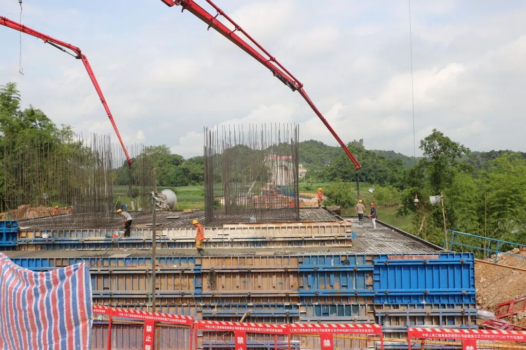 7月20日,崇凭铁路3标项目上金左江双线特大桥43号主墩承台顺利完成浇筑,为项目全力提速进入主桥上部结构施工阶段奠定了基础。