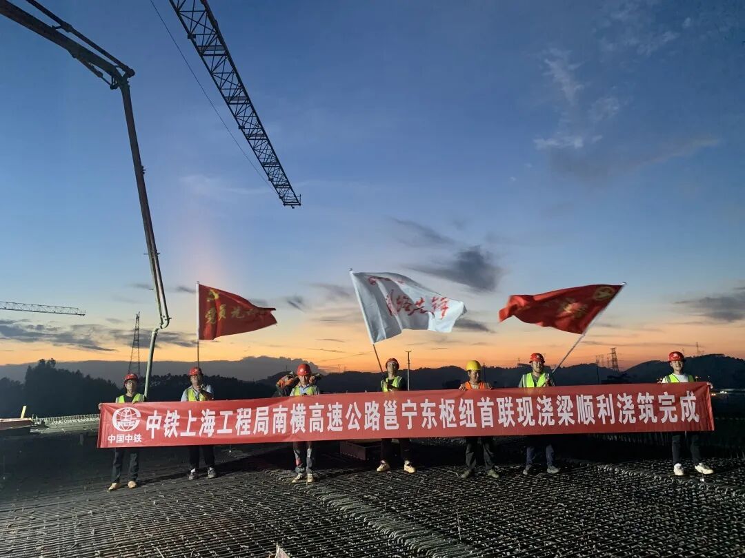 7月29日,南横高速公路邕宁东枢纽首联现浇梁提前3天顺利完成浇筑,这是继八鲤收费站成功封站拆站以来,邕宁东枢纽施工完成的又一次重大节点,标志着项目施工取得阶段性成果。