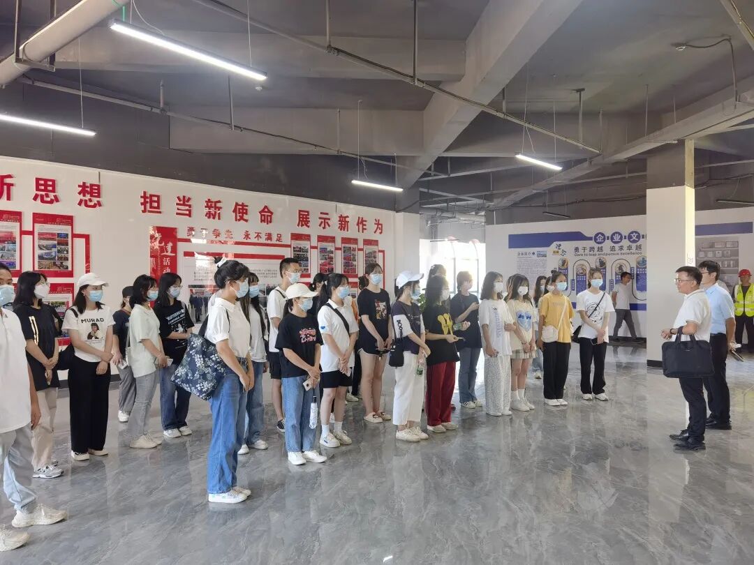 仪式结束后,崇凭铁路项目部组织大学生参观项目部党建文化宣传长廊,讲解员为大家介绍中铁上海工程局发展历程和中国铁路建设峥嵘历史,重点讲解了企业党建文化及崇凭铁路项目建设情况。
