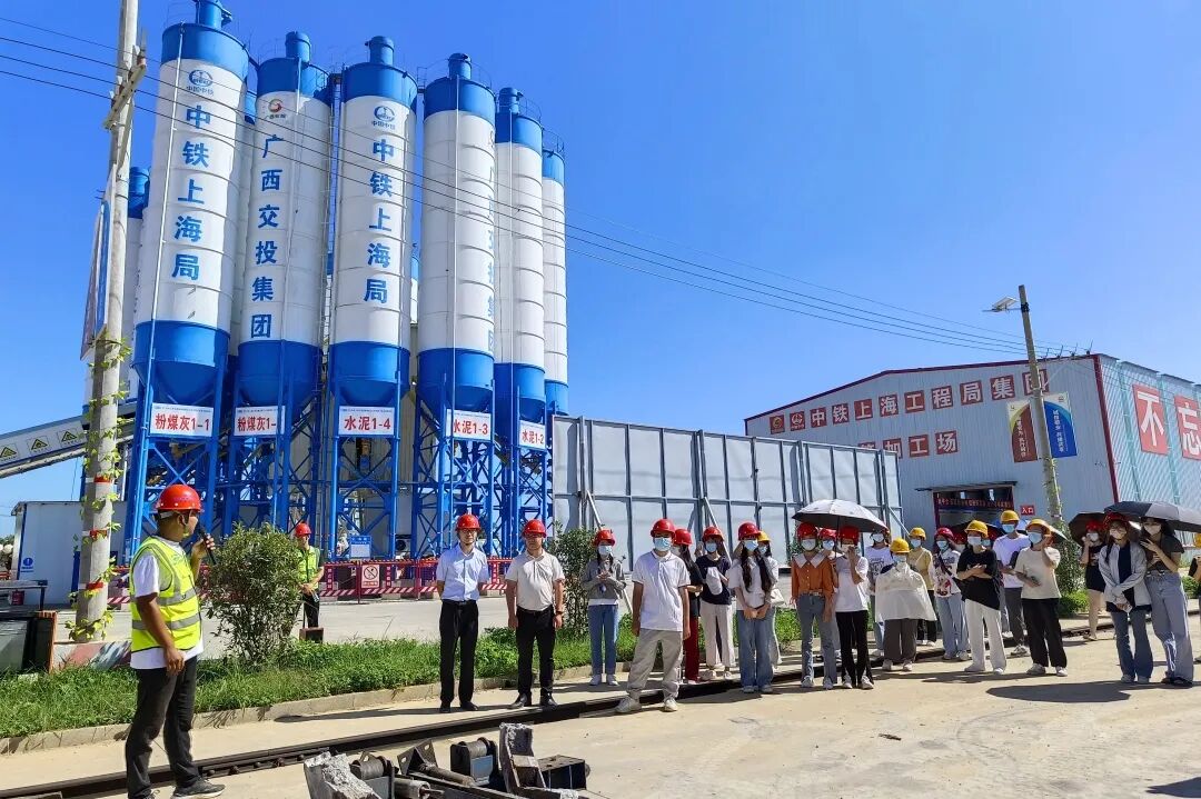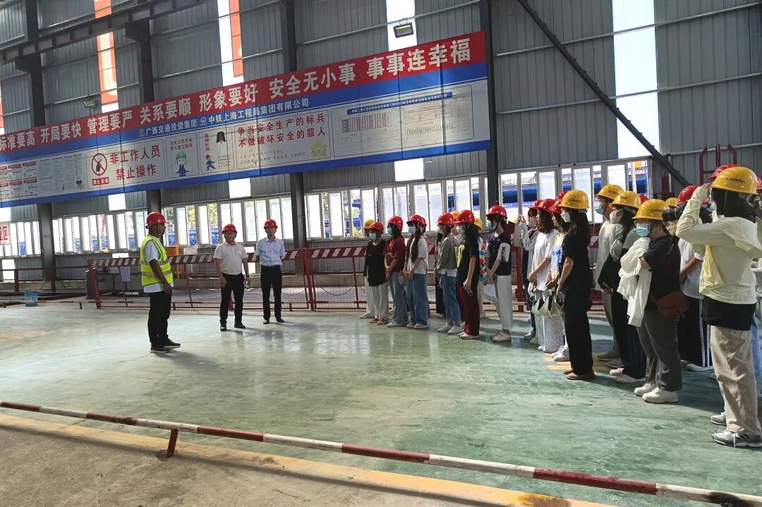 崇凭铁路项目负责人带领大学生参观龙州制梁场,实地了解高铁高架梁生产流程,旨在让亲身体验中国高铁的新发展,深入感受家乡发展的蓬勃力量。