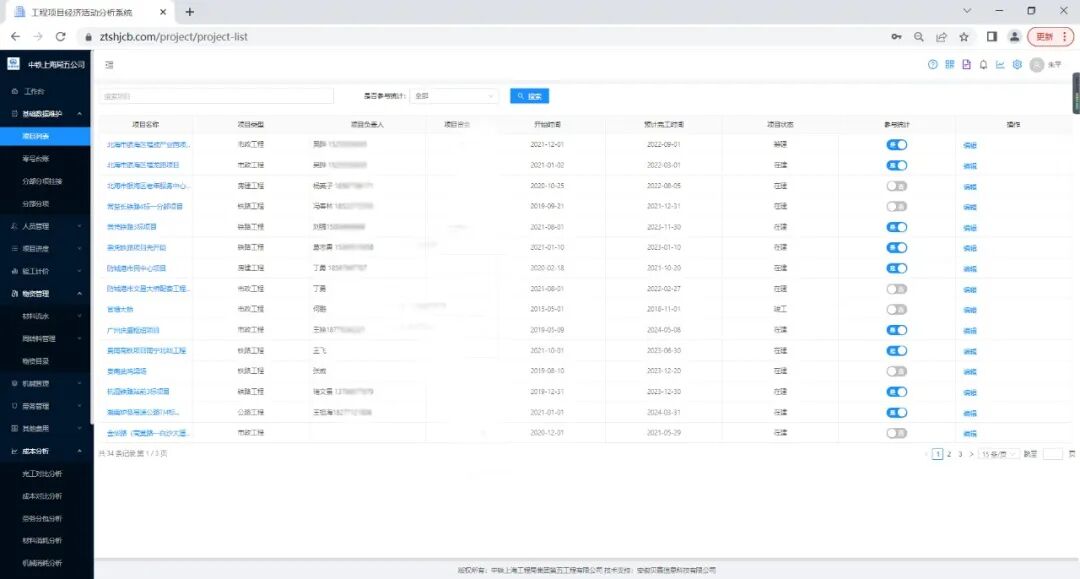 自工作组成立以来,团队成员先后多次深入铁路和市政项目开展现场调研。在历时5个月的开发后,公司工程项目经济活动分析系统1.0版本上线并在崇凭铁路先开段项目启动试点,试点过程中,团队成员不断对系统中存在的问题进行逐个优化。试点2个月后,工程项目经济活动分析系统2.0版本正式上线,在全公司范围内推广。在推广过程中,团队逐步完成了2个版本的模块调整、页面优化、系统升级,并累计组织了17个项目780人次开展集中培训,并完成了系统录入等工作。2022年3月,公司最新更新升级的工程项目经济活动分析系统3.0版本正式上线,该系统再次得到升级和改进。