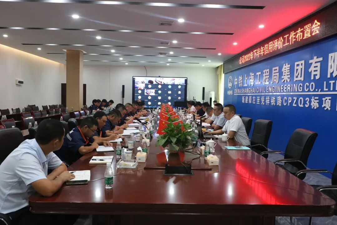 8月21日,公司2022年下半年信用评价工作布置会在崇凭铁路项目部召开。杭温铁路、贵南高铁、常益长铁路、炉慈高速、上横高速、南横高速、贵安高速、信阳高速等项目作为分会场以视频连线的方式参加会议 。公司总经理唐俊、总工程师何鹏、副总经理兼崇凭铁路项目项目经理刘强,公司相关部门负责人,各项目负责人、总工程师、安全总监共计56人参加会议。