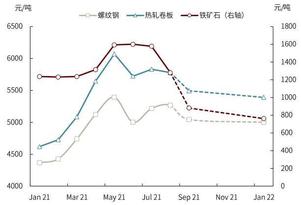 黑色系最近的走势方向基本符合我们半年报中的判断,即“平衡中枢双双下移”,但幅度上有一定超预期。在成本侧,铁矿石价格已从7月中旬的高点230美元/吨回落至130美元/吨左右,触及了边际成本。钢材方面,七月以来钢铁限产风波又起,价格得到一定支撑,但下游用钢需求放缓,价格也随着成本端松动而下行。往前看我们维持半年报中的判断,铁矿与钢材的平衡中枢将双双从高点回落,上半年钢铁市场“高钢价、高矿价、高利润”的三高格局在下半年很难重现(见我们2021年5月9日发布的报告《钢铁:“三高”格局下的再平衡》)。