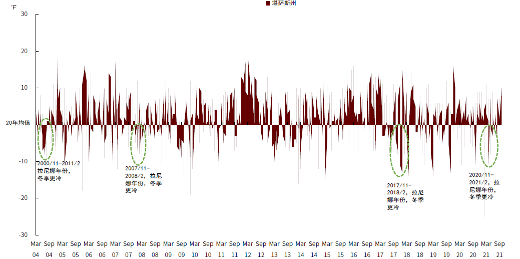 图表12:拉尼娜年份美国堪萨斯州气温情况