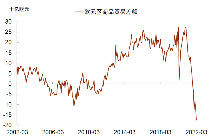 欧元区面临严峻的“滞胀”挑战,下半年经济压力或比美国更大。与美国不同,欧元区通胀主要来源于能源商品价格上涨,即输入性通胀。能源通胀不仅抑制消费者信心,还导致贸易账户恶化,令企业利润承压。为防止通胀失控,欧央行货币政策或转向紧缩,最早或于7月加息。由于经济下行压力大,预计欧央行在货币紧缩上比美联储更犹豫。