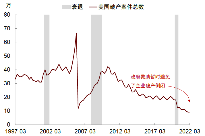 企业资本开支或受到限制。疫情后海外企业资本开支总体偏弱,传统能源行业投资受到抑制。美联储紧缩令信贷条件收紧,可能加剧投资不足。中期来看,投资不足不利于供给扩张,加大通胀风险。另一个值得关注的风险是“迟到的破产”。2020年美国经济衰退后并未出现企业出清,随着财政救助政策退坡,信用市场融资条件收紧,部分企业或面临偿债压力上升和违约风险。