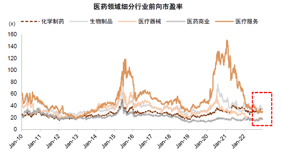图表29:医药细分领域板块估值也处于低位