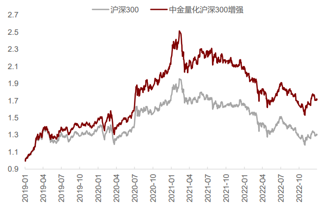 12月中金量化沪深300指数增强 跑输基准0.13ppt。组合样本外跟踪以来(2019-01-01至2022-12-30)累计收益71.73%,累计跑赢基准42.76ppt。