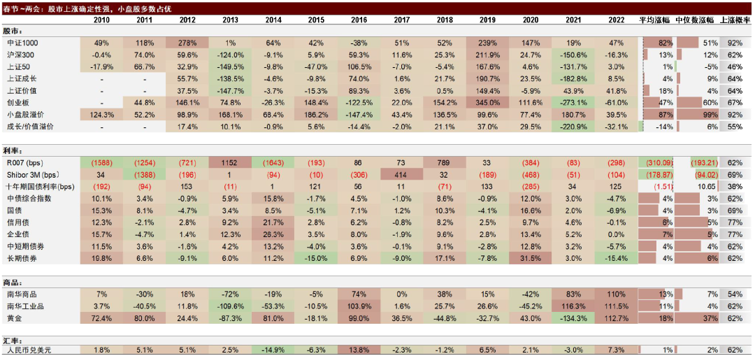 图表10:春节~两会期间大类资产表现汇总
