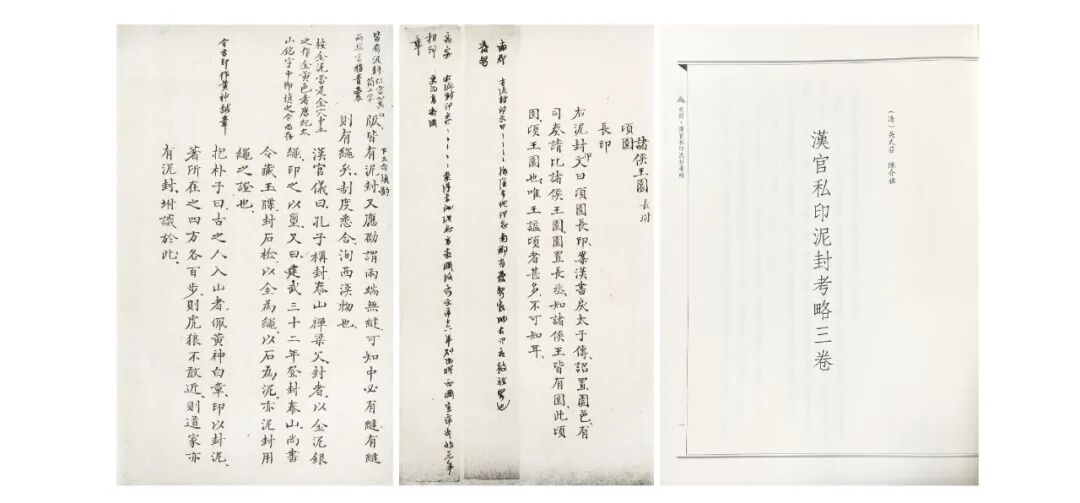 这部书的付印底本(图1)现存上海博物馆,它保存着原始的面貌,具有特定的信息,有助于配合其他条件揭示此书的考辑情况;辑入的封泥,现在主要收藏于上海博物馆和日本东京国立博物馆。(图2)笔者曾分别对这两部分实物做过考察,它是晚清出土封泥中时代序列相对完备、官私印史料最为丰富的一个系统。封泥的收藏过程与《考略》的形成具有密切的联系,因而也是了解中国古代封泥发现、研究历史的一条线索。而上海图书馆收藏的《汉官私印泥封考略》稿本(下简称《稿本》)近年已经影印出版。(图3)这个稿本很重要,它对我们弄清《考略》的形成背景具有揭秘意义。在此之前,复旦大学出版社编辑同志委托我为《稿本》作一说明,因而也与《考略》的异同及相关信息进行比较和梳理。由于这两个因缘,笔者对《考略》编纂过程及其陈 、吴两家藏品的状况做出了初步探究。