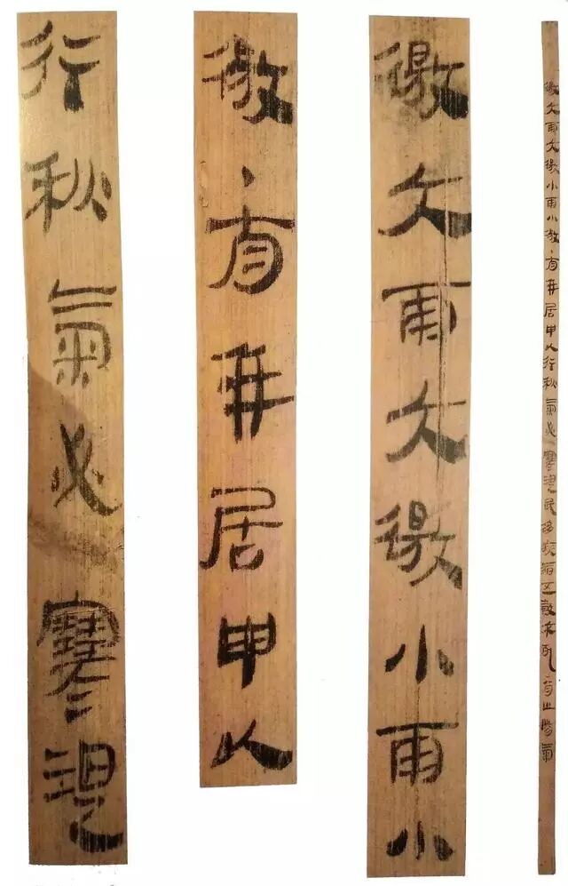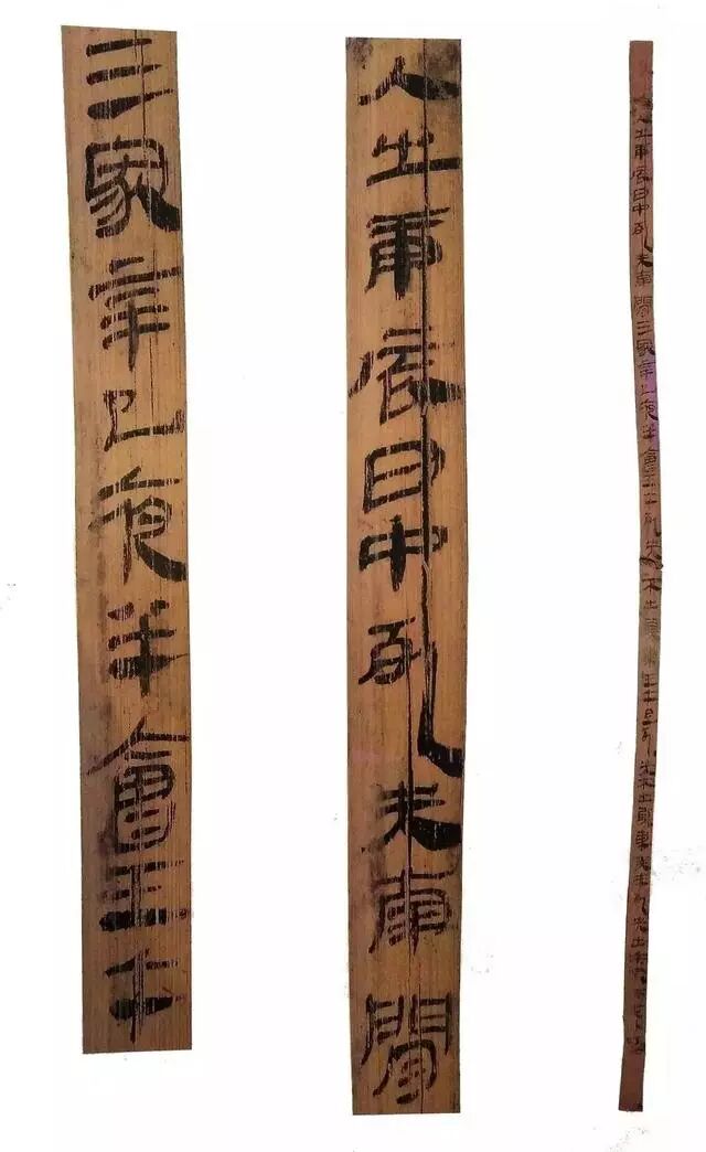 《孔家坡汉简》2000年1月出土于湖北随州孔家坡8号汉墓,有785枚。其中数术筒703枚,内容基同于睡虎地、放马滩秦简《日书》,可以互相比勘;历谱简78枚;木犊4枚,其1枚写字,可能是告地策。李学勤在会上当即提交《随州孔家坡8号墓的年学问题》一文,根据木犊“二年正月王子朔”的记载,论定墓葬时间应为淮南王刘长二年,即汉高祖十二年(前195)。孔家坡8号墓出土简牍计有一册《日书》、一册《历日》和一方《告地书》。《日书》出土状况良好,是继云梦睡虎地秦简《日书》之后的又一重要发现,图文并茂,层次分明。《告地书》是为安置死者而比照生活中实际通行公文的一种虚拟文书。该墓出土的《告地书》文字清晰,从中得知墓主名“辟”,是“桃侯国”的库啬夫。《告地书》载“桃侯国丞万告地下丞”,这个地下丞的管辖范围应不出地上桃侯国的境域。因此有关专家得出结论,墓主葬地也应在当时的桃侯国境内,也就是现在随州一带。西汉汉景帝后期应有一桃侯国存在。但传世文献无此记载,尚需相关史料进一步印证。![]()