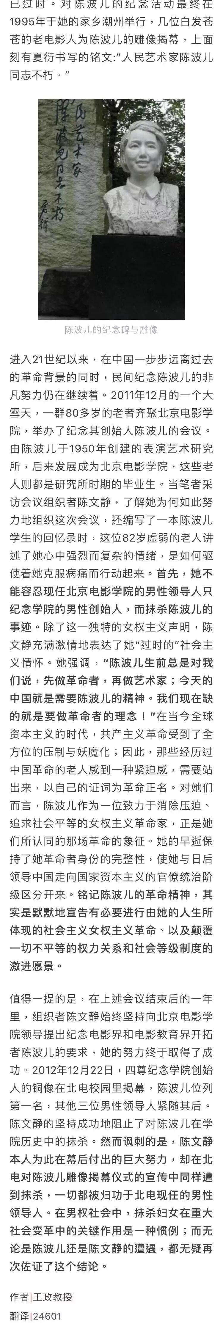 本文译自王政教授的著作《寻找国家中的妇女:中国社会主义女权主义革命(1949-1964)》,第五章。部分引文摘自作者的中文文章“女权寻踪—陈波儿与中国社会主义电影范式的创立”,原载论文集《性别与视觉:百年中国影像研究》,王政,吕新雨主编,复旦大学出版社,2016年。限于篇幅,此中译版没有包括英文原作中的注释。译文经王政教授校对,授权发于时代前进。