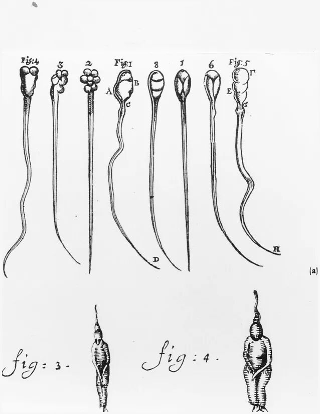 The 17th century conception of spermatozoa (A van Leeuwenhoek).