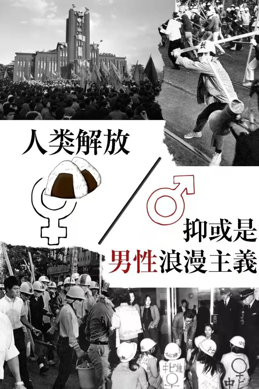 作者:Chelsea Szendi Schieder原文标题为Human liberation or "male romance"?The gendered everyday of the student New Left20世纪60年代末期日本的新左翼运动,与其他地方一样,都采用了对政治的广义定义。活动家将日渐富裕的日本的社会体制的再生产与全球的经济不平等联系起来,将战后日本社会的和平与第三世界的民族解放战争联系起来。在这个理论体系下,“日常” [nichijō],或者“日常生活”[nichijō seikatsu]成为了学生运动者们的一个关键概念,并塑造了他们对国家及大学权威的挑战。在学校里,运动者们攻占了国家和资本的“日常”并进行了有组织的破坏;而女性学生参与者们则尤其体会到了根植于新左翼运动的“日常”中的矛盾。本文中,笔者考察了20世纪60年代末期日本校园运动中女性活动者的经历,来发掘新左翼运动中“日常”的多重含义并阐明这些年轻女性的参与经历是如何揭露出这些激进的理论与实践之间的分裂的。新左翼运动曾为打破所有主流的权力结构带来了空间,但结果却在革命过程中加强了家庭,情感以及性别分工中的性别权力结构。本文将检验“日常”这一20世纪60年代末期日本学生新左翼运动中的关键概念,来发掘这一表面上的解放运动是如何通过忽视女性的声音和运用性别价值观来衡量运动者的投入程度,来维持着某种左翼男性浪漫主义的。一位在多摩美术大学参加了新左翼校园运动的女性毛利节子[Mori Setsuko]在她1970年写就的一份小册子中宣言道,“人类,人类,人类。在斗争中,我们反复地说着这个词。这个中性的名词实现了些什么呢?我们嘟囔着这个中性名词又是何意呢?(这场为人类解放的斗争)当然是我们的斗争,但同时它也并非我们的斗争。”人类这一“中性名词”也意味着对男性与女性一视同仁的完全的革命和解放的承诺,但是毛利和其他许多年轻女性却发觉到“人类”在新左翼运动的愿景中依旧保留着男性的主体性。1.