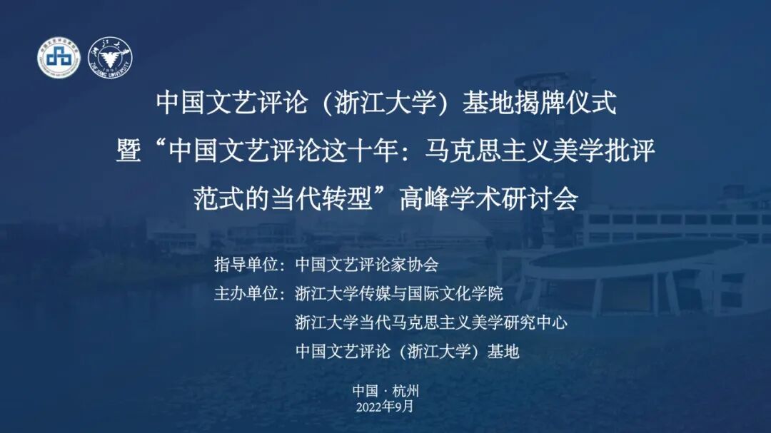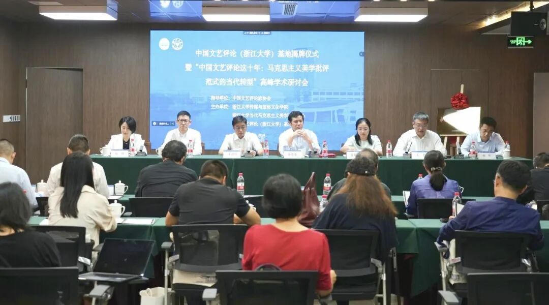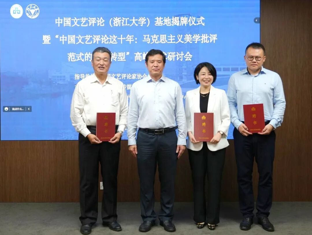 研讨会上,专家们着重思考了作为思想方法的中国马克思主义文艺理论、新时代文艺评论工作者的素养与价值追求以及经典马克思主义文论当代化中国化的逻辑进程,讨论了当代中国文艺的现代化自觉、网络文艺评价的维度、人工智能时代马克思主义文艺批评的范式转换等话题,探索在“两个结合”的指导下构建新时代文艺理论与评论的新话语和当代艺术批评的新路径。中国文艺评论(浙江大学)基地揭牌仪式暨“中国文艺评论这十年:马克思主义美学批评范式的当代转型”的成功举办,让中国文艺评论(浙江大学)基地建设有了一个美好的开端。未来,基地将继续致力于加强和规范马克思主义文艺理论和评论的阵地建设,切实发挥中国文艺评论基地在创新基础理论、引导创作实践、提高社会审美、引领价值风尚等方面的重要作用,为构建中国自主中国特色的文艺理论体系作出重要贡献。