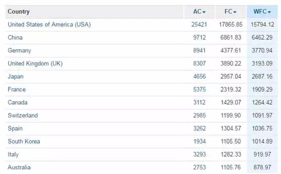 我们再看世界顶级科技杂志《自然》编写的自然指数,统计68种全球影响力最大的科技杂志发表的论文,根据不同权重做了自然指数,下图是2016年2月1日—2017年1月31日的自然指数排名,WFC中国是6462.29,稳居世界第二,已经是日本的两倍以上,当然比美国的15794差距还很大。日本只排在世界第五。