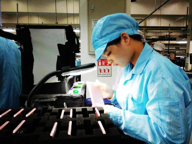 ▲资料图片:在OPPO生产基地,一位员工正在对手机进行品质检测。