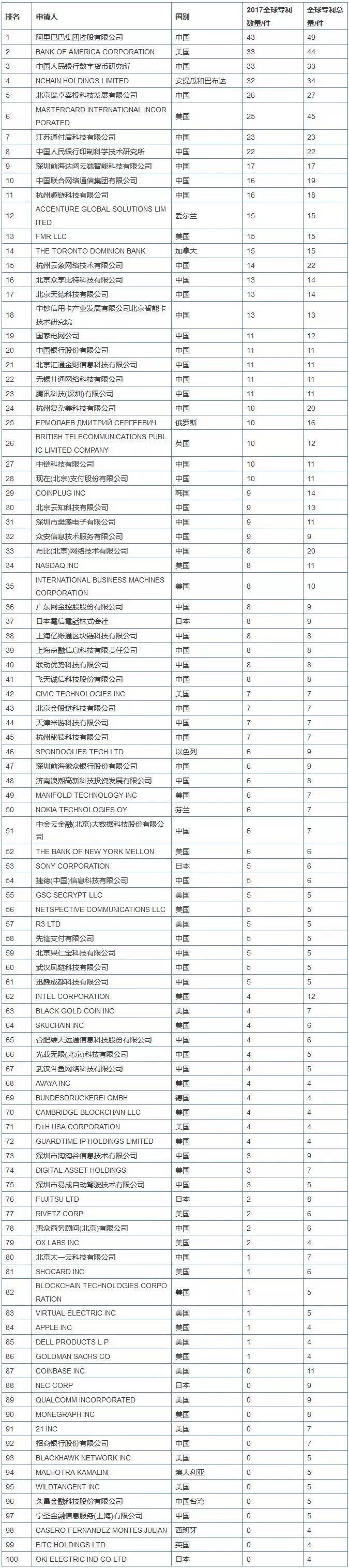近日,全球影响力的知识产权产业媒体IPRdaily联合incoPat创新指数研究中心发布了“2017全球区块链企业专利排行榜(前100名)”。报告显示, 中国在区块链专利的增速远超过美国,领先全球。前100名中,中国入榜的企业占比49%,其次为美国占比33%;阿里巴巴以49件的总量排名第一。