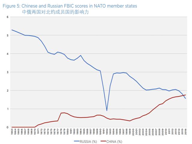 4.中国的上升令人印象深刻。不仅在其所在的地区,而且在地区之外,包括在北约成员国和在非洲的一些地方,已经超过了美国,大大扩大了其影响力。